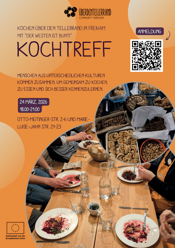 Dienstag, 24.03. 18:00 – 21:00 Uhr, Pavillon Otto-Meitinger-Straße 2: Kochen über den Tellerrand. Bitte meldet Euch hier an: https://www.tickettailor.com/events/tellerrandkochenmuc/2090337/r/Freiham
