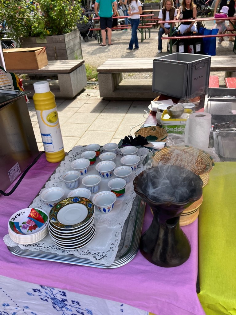 Kindergewusel. Bekannte, Nachbarinnen, Passanten, Neugierige, Helferinnen, Unbekannte. Musik, Tanz, Spiele; Essen, Trinken und Gespräche. 30 Gruppen haben ihre Stände aufgebaut, auf der Bühne war durchgehend Programm, und die Stimmung war einfach fantastisch.